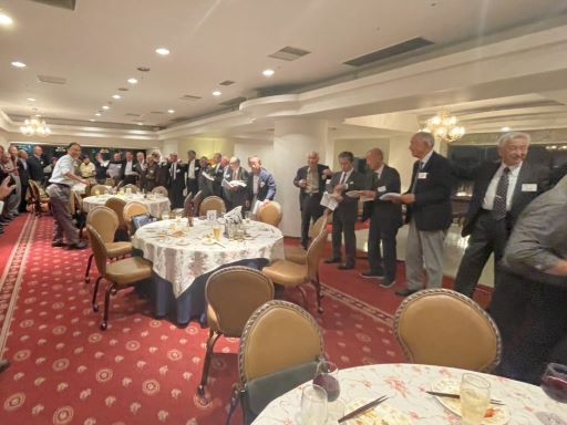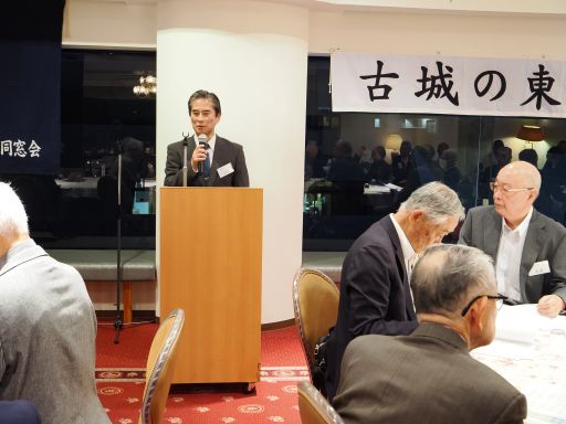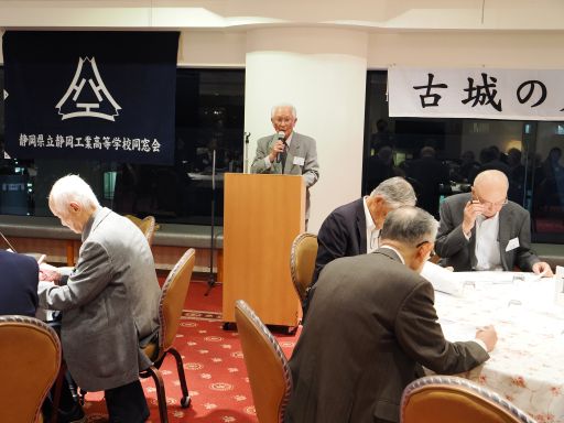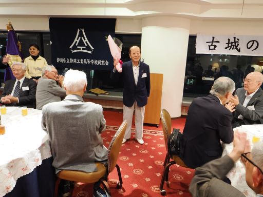 懇親会開始時には、三枝稔氏(機S20)の白寿を全員で祝福し花束贈呈が行われた。三枝氏は今でも同窓会の理事会や懇親会に欠かさず出席されている。